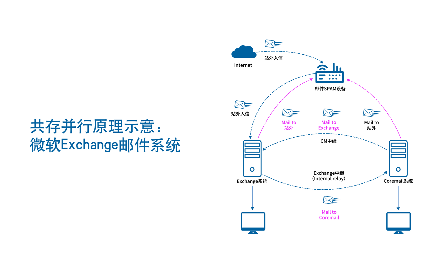 Coremail邮件系统历时26年,把不同的功能模块化,最大程度地减少系统的数据冗余,增强系统的稳定性和运作性。系统采用分布式部署架构,最大地避免系统宕机,同时系统可保持高拓展性。