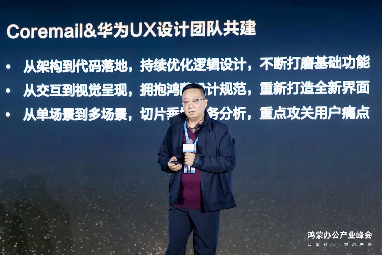 作为本次峰会获邀进行主题演讲的核心伙伴,Coremail高级产品总监郝家雨分享了Coremail鸿蒙化适配历程和成果。