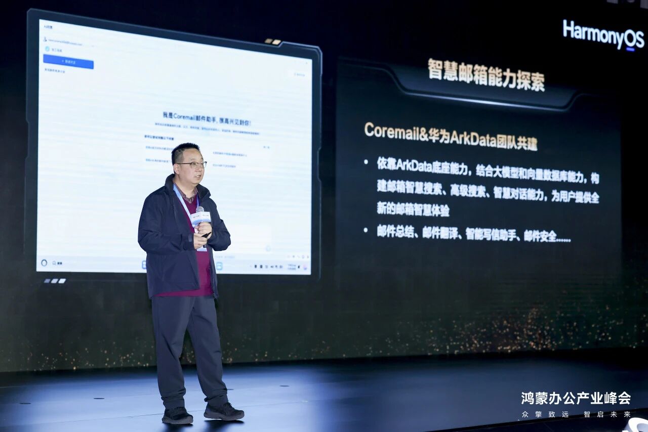 12月11日,华为鸿蒙办公产业峰会在武汉召开。Coremail作为鸿蒙生态的核心共建者受邀出席,并获得“商用市场先行奖”。